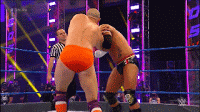 MAS ROMAN SEGUE DE PÉ! O samoano coloca-o em um Headlock novamente e começa a empurrar para o canto do ringue, o referee começa a fazer a contagem para separar os dois e Roman faz isso jogando o japonês pro outro lado do ringue